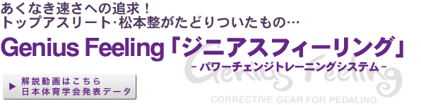 ジニアスフィーリングは、ペダリング技術を改善するために開発された、世界で唯一の「ペダリング矯正ギア」です(特許番号3764124号、EUとUSにと国際特許申請中)。その他の楕円ギアとは、その開発目的、利用効果、形状の設定においてまったく違ったものとなります。ご利用についてはくれぐれもお間違いのないようにご確認ください。